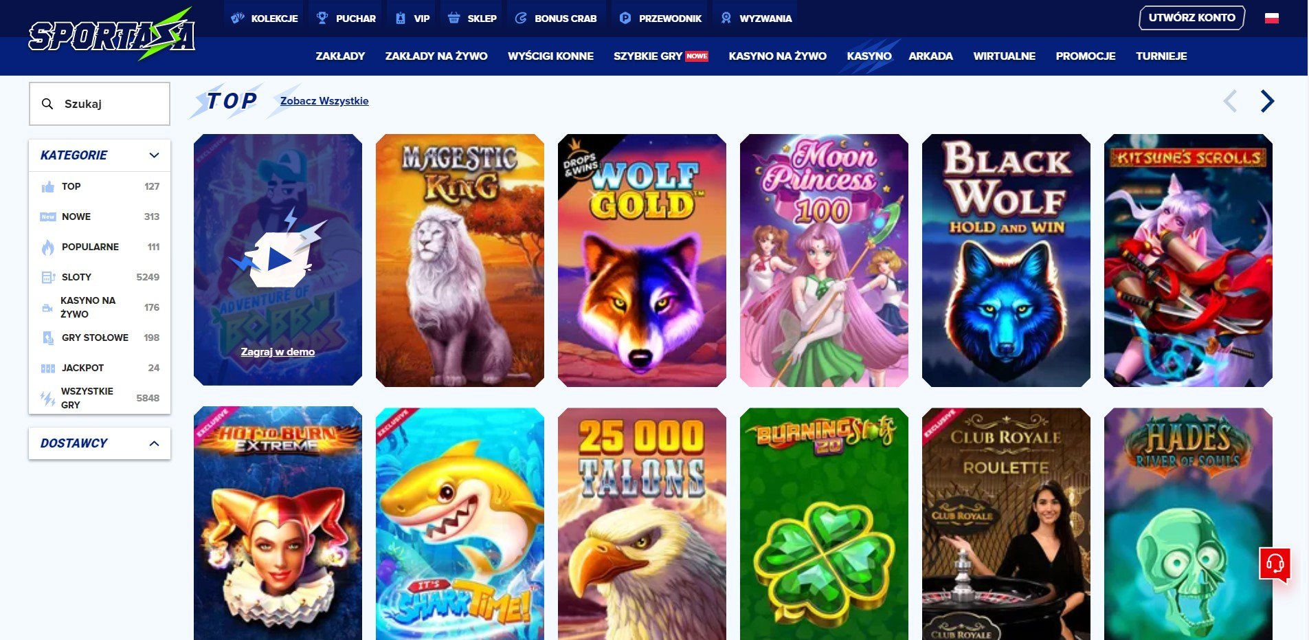W kasynie jest dostępnych wiele różnych gier. W Sportaza sloty zostały podzielone na kilka wygodnych kategorii: