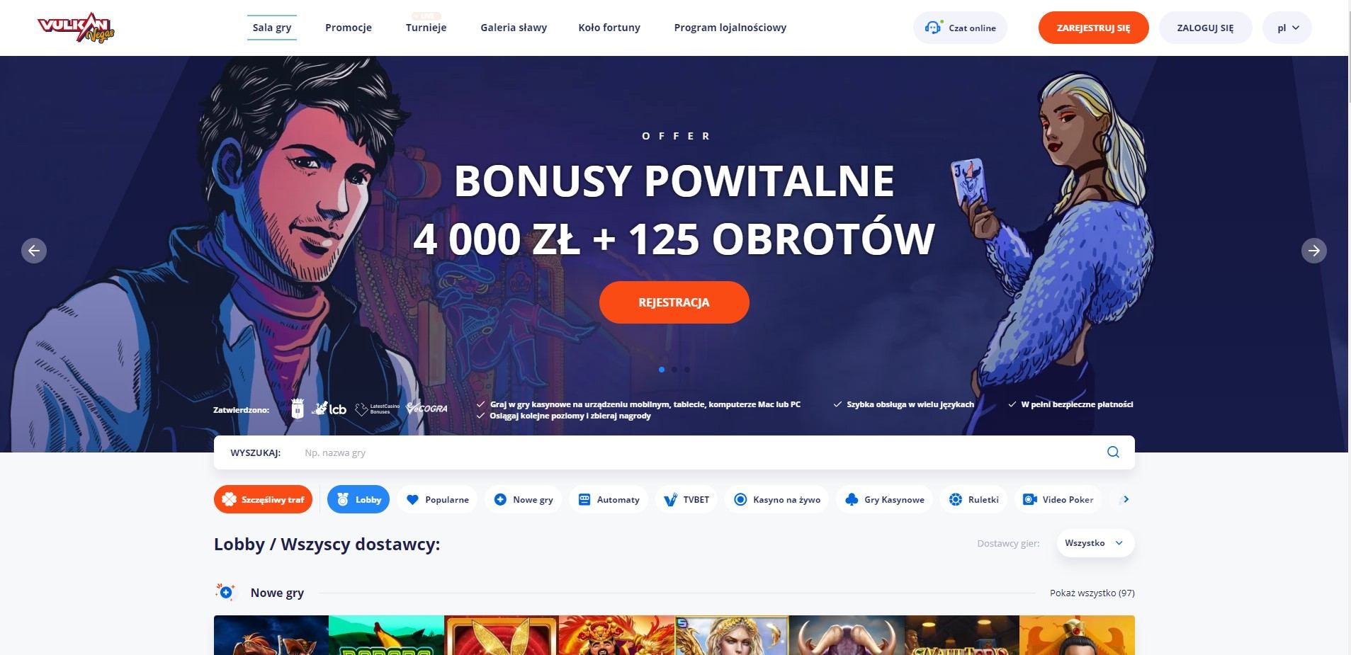 To miejsce, które szczególnie spodoba się miłośnikom automatów. Znajdziemy tu wiele tytułów od popularnych producentów, a także inne gry kasynowe, takie jak poker, ruletka czy zdrapki. Prym wiodą jednak Vulkan Vegas sloty.